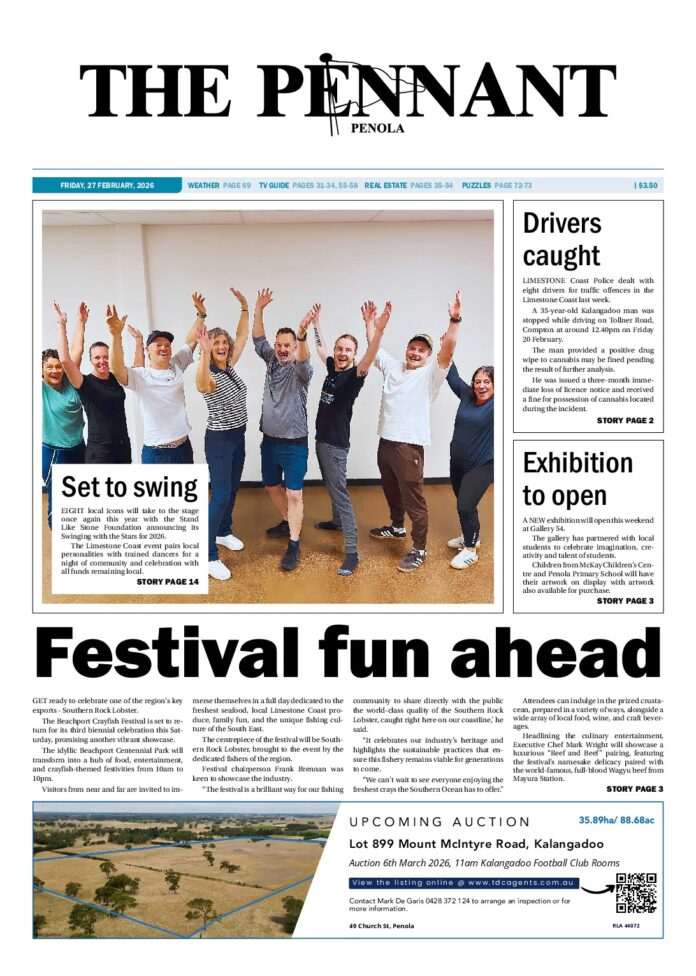 TBW – The Penola Pennant – 27th February 2026 Subscribe or Login to see the rest of the content. Username Password * Remember Me Forgot Password News Eager MGGC golfers compete in Stablefords 27/02/2026 THE Mount Gambier Golf Club's Thursday Pro Shop Stableford competition attracted 98 players on February 12, with the usual count-backs required to determine the... Anglers flood Limestone Coast for peak fishing weather 27/02/2026 A HEALTHY weekend of weather across the Limestone Coast saw many anglers head for the water. The Port MacDonnell Offshore Angling Club held a... Penola bowls hosts prestigious women’s competitions 27/02/2026 IN the last two weeks, women of the Penola Bowls club competed in several events against teams from across the Limestone Coast. Two of the...