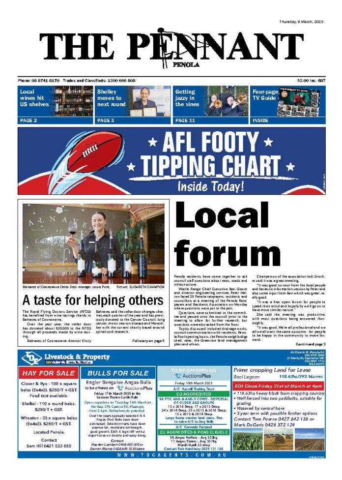 The Penola Pennant – 9th March 2023 Having problems with the Viewer? Try the Classic viewer. News Ransom in fine form 13/03/2026 TIGERS 14 D SOUTH 3 KARL Ransom played an absolute blinder, delivering an unstoppable all-round performance as the Tigers dismantled South in Division 1 baseball... Meinck unstoppable as Federals demolish South 13/03/2026 FEDERALS 13 D SOUTH 6 ON a day when the bats were blazing, Nathan Meinck delivered an absolute masterclass to lead Federals to a thumping... Central claims thriller over Tigers 13/03/2026 CENTRAL 7 D TIGERS 6 CENTRAL snatched a dramatic 7-6 walk-off win over Tigers on Friday, capitalising on an eighth-inning error to break a 6-6...